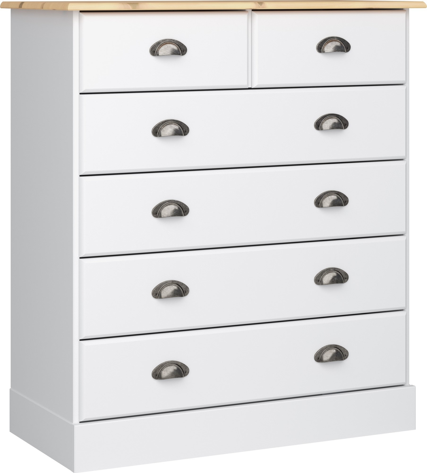 Commode en MDF avec plaque supérieure en pin massif laqué.